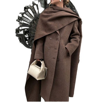 Cappotto invernale da donna alla moda doppio petto lungo con collo a sciarpa con bottone Casual Trench da donna